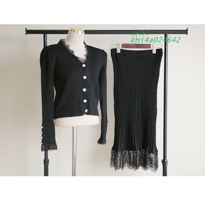 裾レース刺繍 前ボタンニット 長袖ロングタイトセットアップアンサンブル 黒 カジュアル フェミニン レディース きれいめ 服 韓国 kni4a024642の検索結果