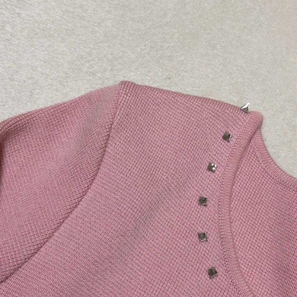 BLUMARINE ブルマリン ブルーガール イタリア製 ピンク ニット ワンピース 膝丈 スタッズ ラインストーン サイズXS ウール BLACKFEMALETHERAPIST_ORG