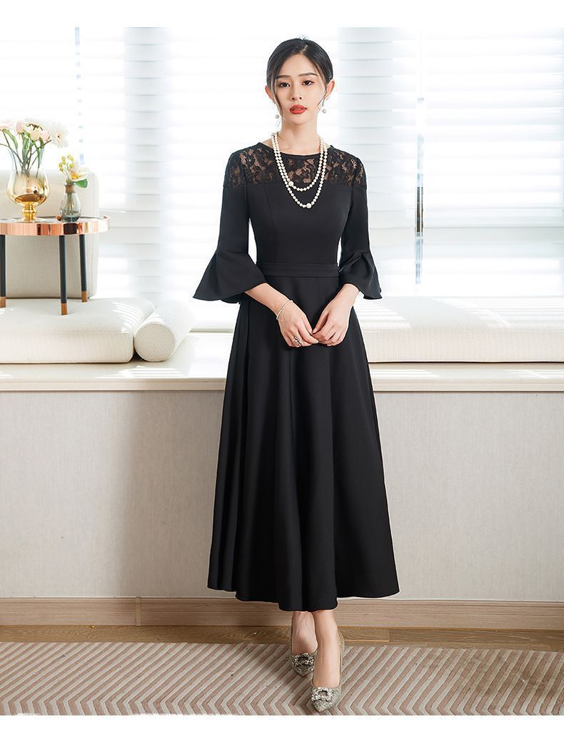 ママ パーティードレス パーティドレス 結婚式 ワンピース 披露宴 卒業式 入学式 発表会 二次会 春夏秋冬 フォーマル レディース ロング丈 袖レース 春 夏 秋 冬 xiuhua14