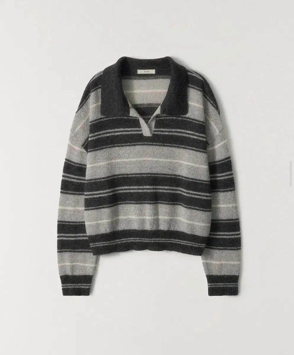 ラウスト プレストライプ オープンカラ プルオーバー チャコールの検索結果